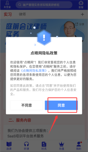 1、启动点睛网应用,在隐私政策页面点击同意启用服务。