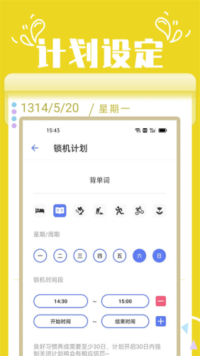 2、可以随时设定锁机时间以及锁机期间可以使用的应用。也可以设计锁机计划,每天到点自动锁机。