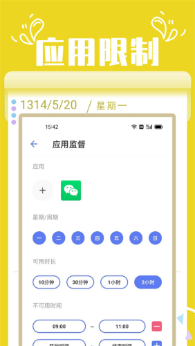 5、可以限制每天的总使用时间和单一的应用程序的可用时间。