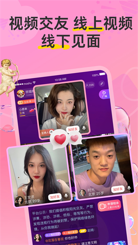 可以在线上与异性进行视频对话交流,能够通过视频远程见面聊天。