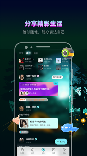 2、用户可以加入线上的派对房间来实时的欢聊互动。