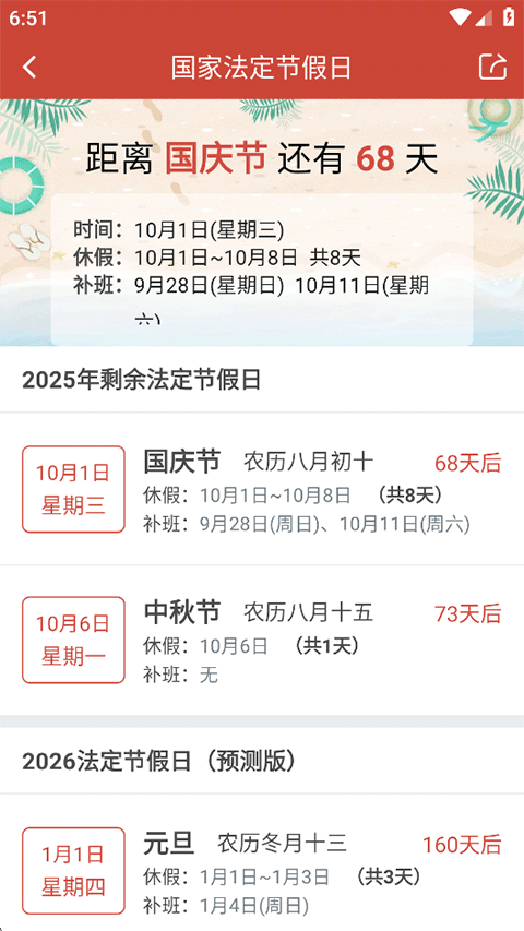 3、专业日历,节日、节气、放假安排都能知道;