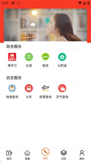服务整合粤学习、社保、税务等政务服务及快递、火车、机票等民生查询功能。