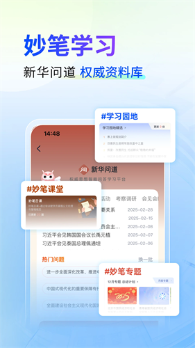 3、通过智能问答与问答社区,结合新华社新闻数据和媒体智库分析能力,提供沉浸式学习。