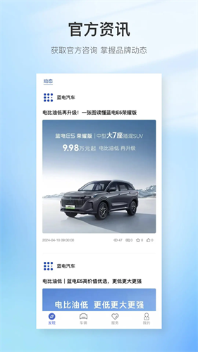 2、拥有社区服务功能,可以实时了解相关的活动、资讯,除此之外,还可以看车选车,与不同伙伴交流。