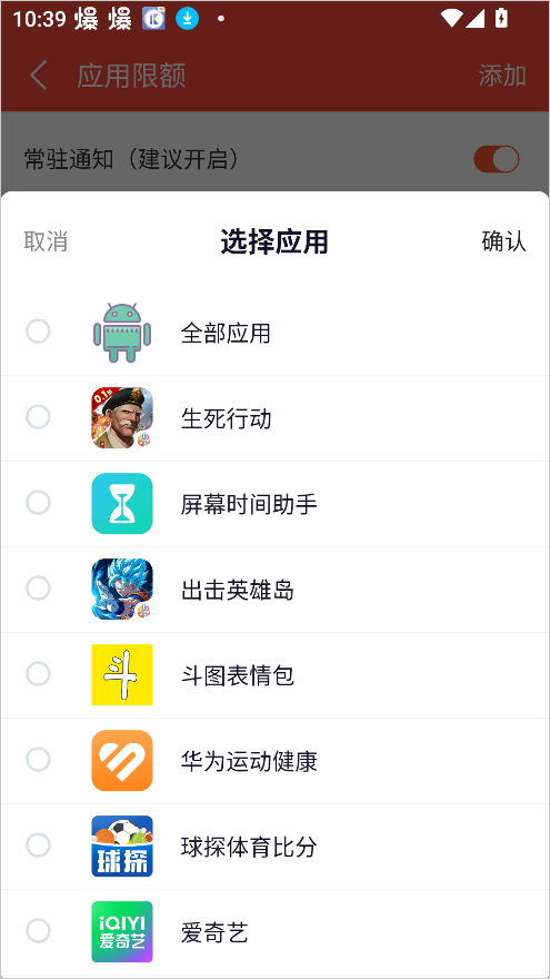 3、从应用列表里勾选你希望进行使用时间管控的目标应用。