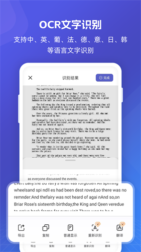 2、十国语言OCR识别系统支持精准文字提取与多语种互译功能。
