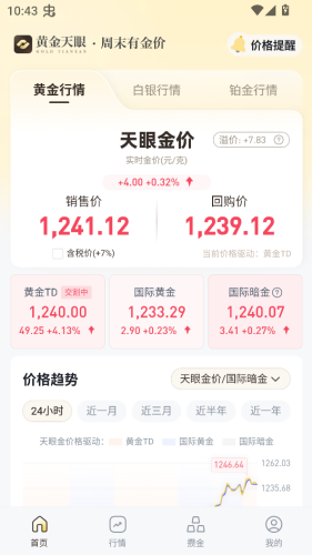 1、在软件首页,我们能够查看黄金、白银、铂金实时行情。