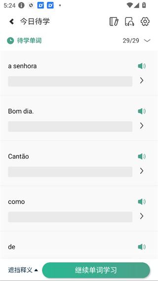 莱特葡萄牙语学习背单词最新版应用说明: