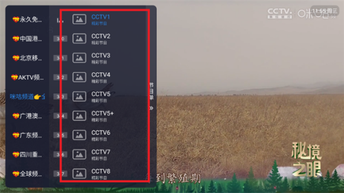 2、点击屏幕,弹出节目栏。