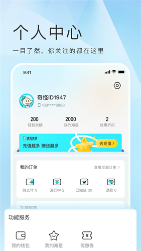 展示了用户详细的个人中心,从而可以查看自己的钱包余额。