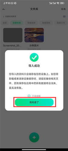 5、选择完图片后,显示导入成功点击【我知道了】即可。