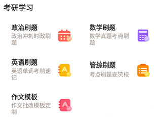 2、然后在最下方的考研学习功能栏目中选择对应的科目刷题即可。