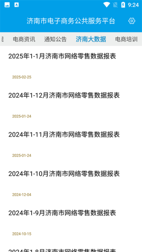 3、我们可以通过“济南大数据”功能来获取到济南市网络零售数据报表。