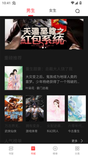 2、海量书库 类型丰富:产品包含了言情都市、玄幻仙侠、武侠、穿越重生、豪门总裁、宠文、宫斗、科幻灵异、青春校园、种田文、军婚、历史军事、网游名著等网文类型。