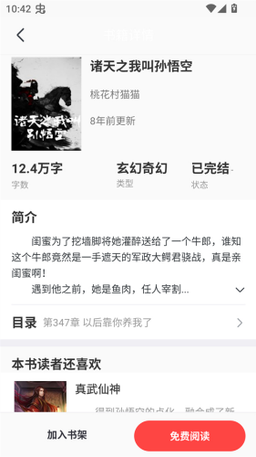2、接下来我们可以开始选择自己喜欢的小说,选择好小说之后就可以打开并查看小说信息。
