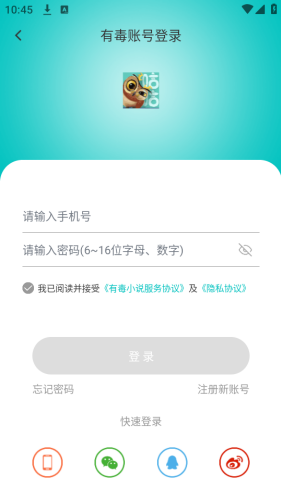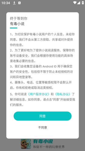 1、在本站下载好有毒小说app,同意协议。