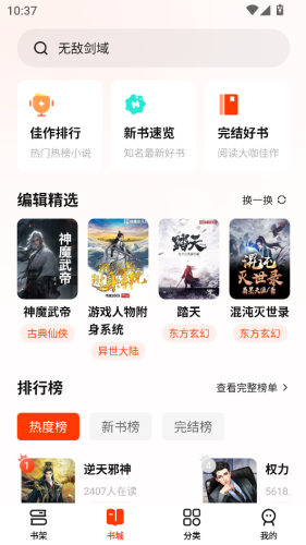 1、小说分类丰富,涵盖男生、女生专区,以及玄幻、仙侠、都市、历史、游戏竞技等多个细分品类,还有热度榜、新书榜、完结榜等榜单,方便用户快速找到感兴趣的内容。
