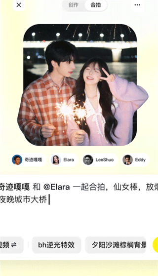 支持用户实时邀请好友来进行创意合拍,以便可以一键合拍创作有梗的剧本视频。