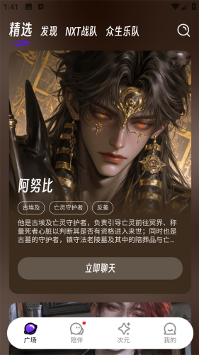2、AI风格:透过在搜索栏里输入简单的关键词寻找相似风格的AI,输入仙侠就会出现许多仙侠类的虚拟角色。