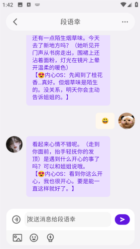 4、聊天对象具备智能响应能力,能根据用户当前情绪状态与输入内容动态调整回应风格,提升对话的贴合度与陪伴感。