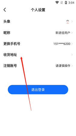 3、进入个人设置界面,点击【收货地址】;