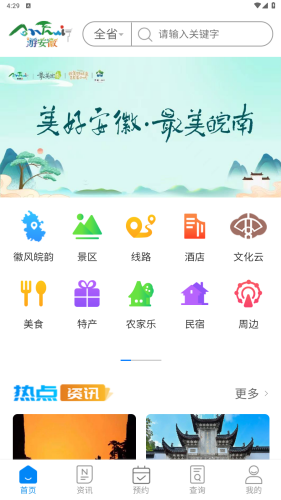 用户可以通过搜索对安徽本地的文化以及景点查询,获取到关联的所有旅游信息;