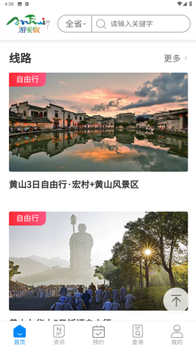 游安徽app手机版是一款便捷实用的旅游软件,集安徽文化和旅游资源展示、资讯发布、商务预订、导航导览、智能搜索、智能客服、咨询投诉等功能为一体的公共服务平台,为游客在安徽旅游提供智慧化、个性化的服务,真正实现“一部手机游安徽”,用户旅行中的精彩瞬间都可以在这款软件上面分享,将自己的美好记录下来。应用还提供了在线购买纪念品和民宿预订等贴心功能,让用户在旅途中享受更舒适的体验,如果你是对安徽省感兴趣的用户,不要错过这款专业、便捷的应用,快来下载体验一番吧。