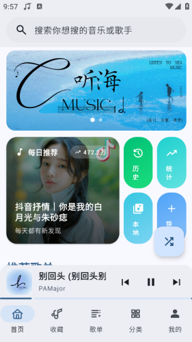 听海音乐app官方版是一款免费的Android听歌应用,音质表现特别出色,支持高清音质播放,不管是用耳机还是外放,都能清晰听到歌曲的细节,播放过程中完全没有卡顿、杂音的情况,支持自定义歌单创建,你可以把喜欢的治愈系歌曲、动感旋律分别整理成歌单,方便不同场景下快速切换。软件拥有非常强大的搜索引擎技术,相关用户在这里只需输入相应的歌曲名或者歌手名便可以快速找到自己喜欢的歌曲,能够很好的提升了便捷性,界面清新简洁直观,占用内存小,力求为用户提供流畅的听歌体验,喜欢就来本站下载试一试吧。