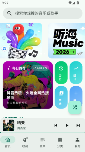 1、在软件首页下,我们能够看到精美的界面,在这里汇聚了:每日推荐、历史、统计、本地等一系列功能板块。