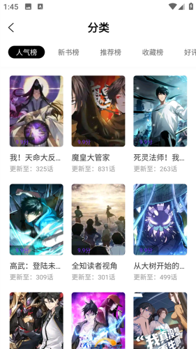 2、其中有超多的榜单方便用户寻找喜欢的漫画。