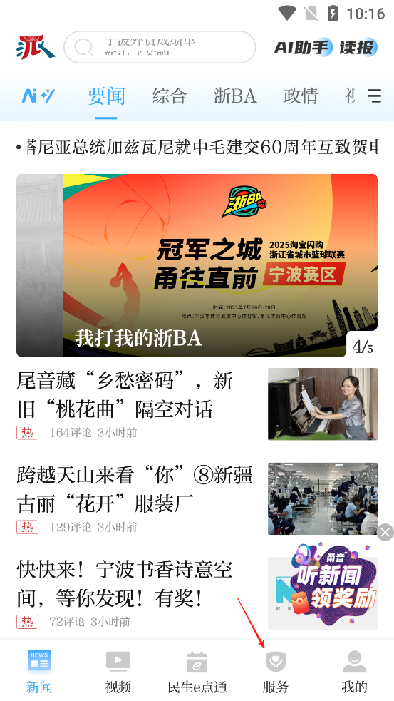 5、除了发帖以外,甬派App还能进行【交友、商城、小记者、服务、看新闻等一系列功能】