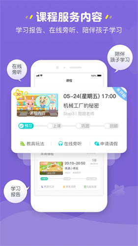 学习报告、在线旁听、陪伴孩子学习。