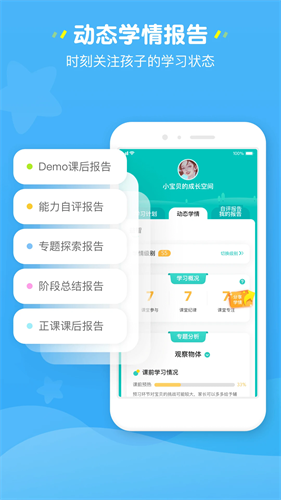 每节课后学习报告实时生成,孩子学习表现数据化呈现。