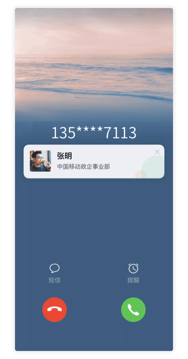 *注意:需要保证移动办公的后台进程不被清理,才能正常显示来电名片。