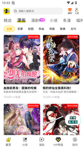 3、种类齐全任你选:国漫、日漫连载漫画、完结漫画、热血漫画、总裁漫画、人气改编统统搜罗。