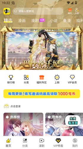 1、首先下载并安装屯屯漫画app下载安装最新版本,安装完成后打开app进入到主界面。
