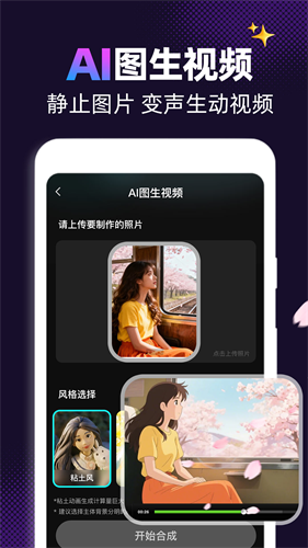选择相册图片+输入描述,即可让单图/多图生成动态视频,静态素材秒变电影感片段。