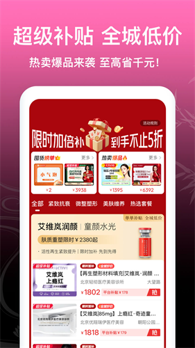 5、超级补贴来袭!热门爆品全城低价,至高可省千元!抗衰,补水,轮廓调整统统高补钜惠!