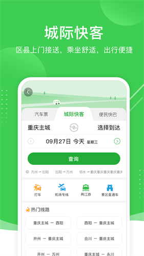 愉客行app是一款由重庆市政府和交通局批准建设的官方出行服务应用,它接入了全市75个汽车站,二级以上的车站全覆盖,每年光汽车票联网销售就超过2000万张,500多万注册用户的数据摆在那儿,把整个重庆地区的道路出行资源整合进了手机里,用起来特别踏实。愉客行app不是只卖汽车票那么简单,城际快客、车站接送、机场专线、景区直通车、重庆周边游、旅游包车、两江游、出租车、网约车,能想到的道路出行方式基本都涵盖了。重庆本地人日常通勤也用得上,上下班不想挤公交地铁,点开愉客行叫个网约车或者拼个城际快客,比路边拦车靠谱多了。平台把政府监管和商业运营结合起来,既保证了服务正规,又保留了市场灵活性。