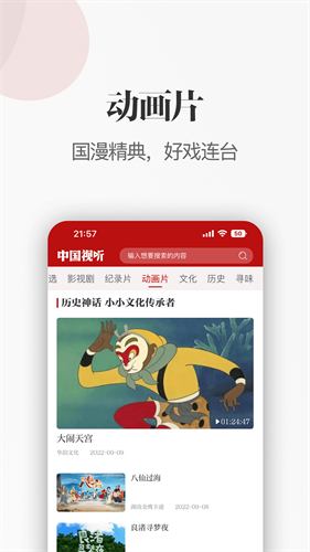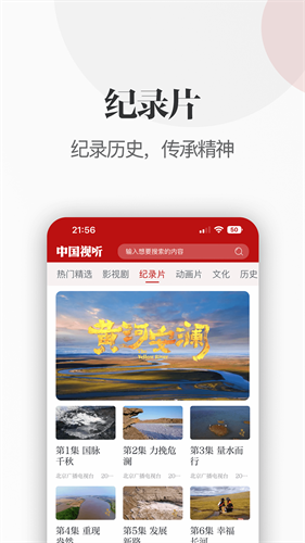 “视”版块提供海量优秀电视节目和优秀网络视频节目,开设热门精选、影视剧、纪录片、动画片、文化、历史、短视频等栏目。