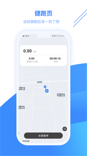 1、点击开始即可进行运动,app会记录你的跑步路线和配速。
