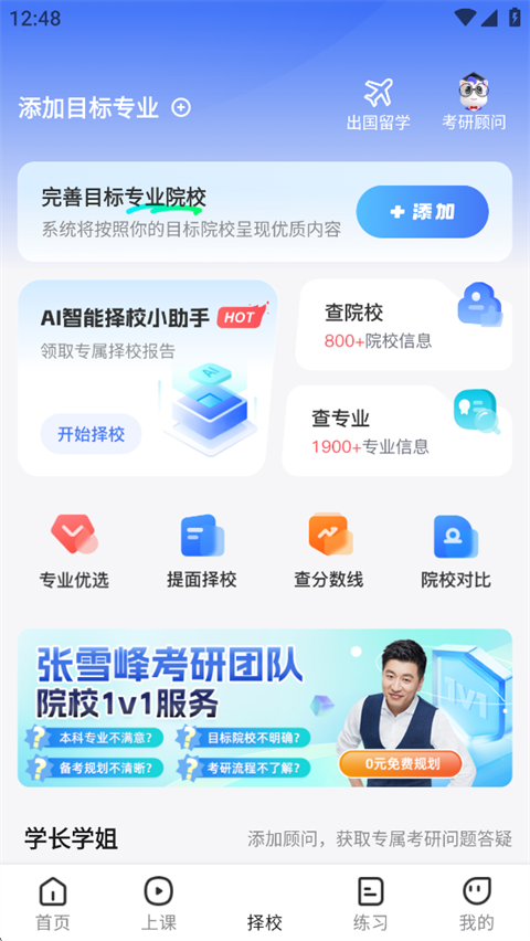 4、为学生提供许多服务,包括大学选拔,问题解答,学习计划制定,研究生信息以及考研的全套规划和指导。