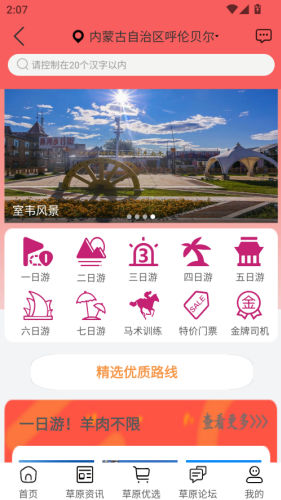 2、旅游推荐路线,一天、两天、三天,不管是几日游都能给你安排上。