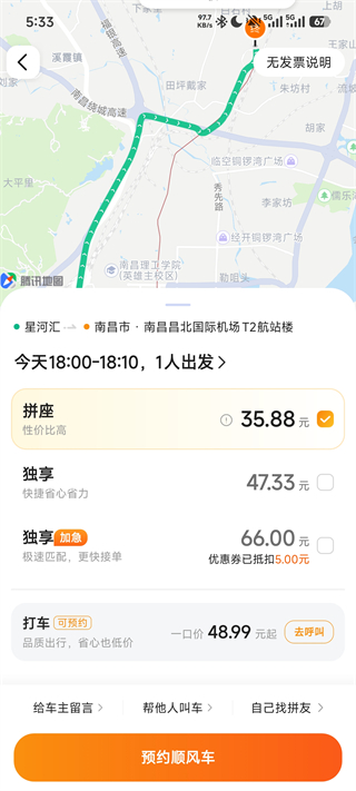4、系统会显示顺风车报价,点击“确认预约”即可。接下来,等待司机接单并前来接你。