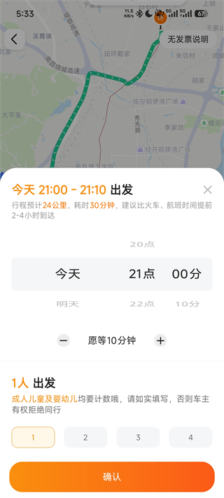 3、选择出发时段、等待时长及乘车人数,确保信息准确无误。