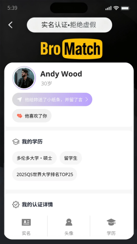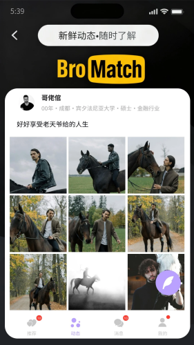 BroMatch安卓版最新版本是一款实名制男性多元化交友应用,拥有全国各地超多与你兴趣相同的朋友,帮助用户快速找到志同道合的朋友或潜在伴侣,其独特的三重认证体系(头像认证、身份信息核验和学历认证)确保了用户信息的真实性和可靠性,有效杜绝虚假信息和照骗现象。同时软件内为用户提供了社交社区,在里面能够随时分享自己的生活瞬间。还拥有个性化推荐系统,能够根据用户的喜好和类型,为用户推荐更多心仪的人选,有助于用户更快地找到理想型,提高交友效率,感兴趣的朋友们快来下载体验吧。