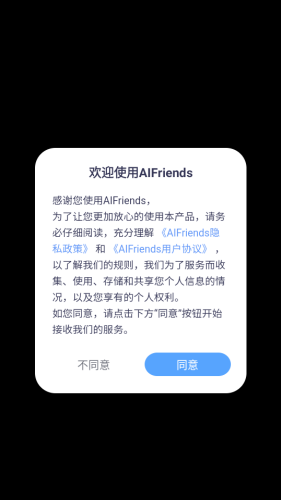 1、下载好AIFriends官方版,打开软件同意协议。