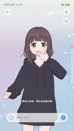 3、情感系统:内置情感系统,角色会根据用户互动频率与内容产生不同情绪状态,影响对话内容与行为表现。用户需关注角色心情值、体力值等状态指标,并通过互动进行调节与恢复。