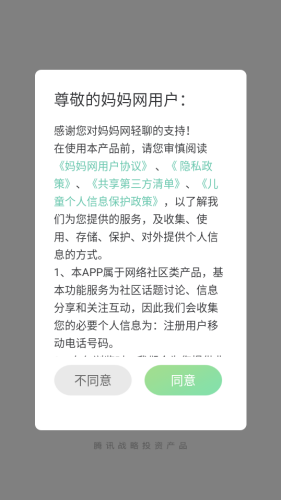 1、下载妈妈网轻聊app,打开软件同意协议。